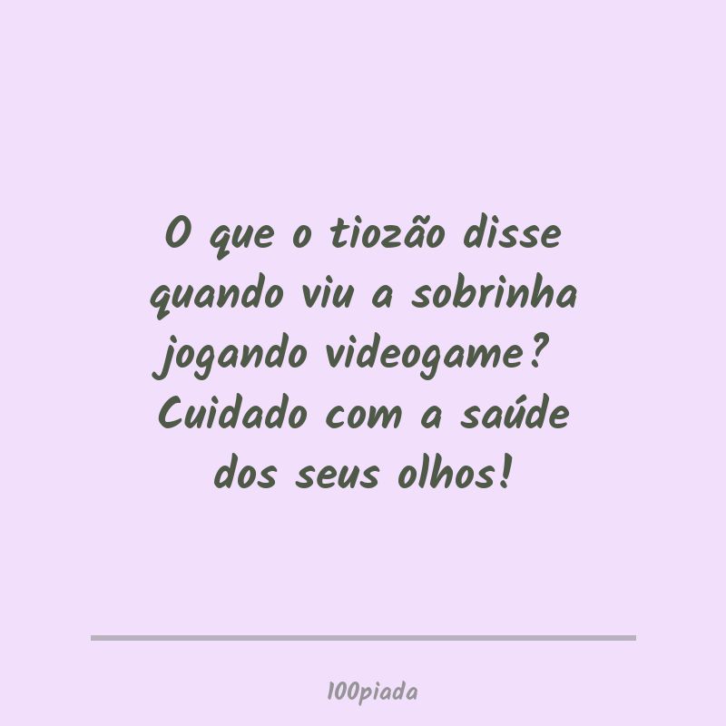 O que o tiozão disse quando viu a sobrinha jogando videogame?